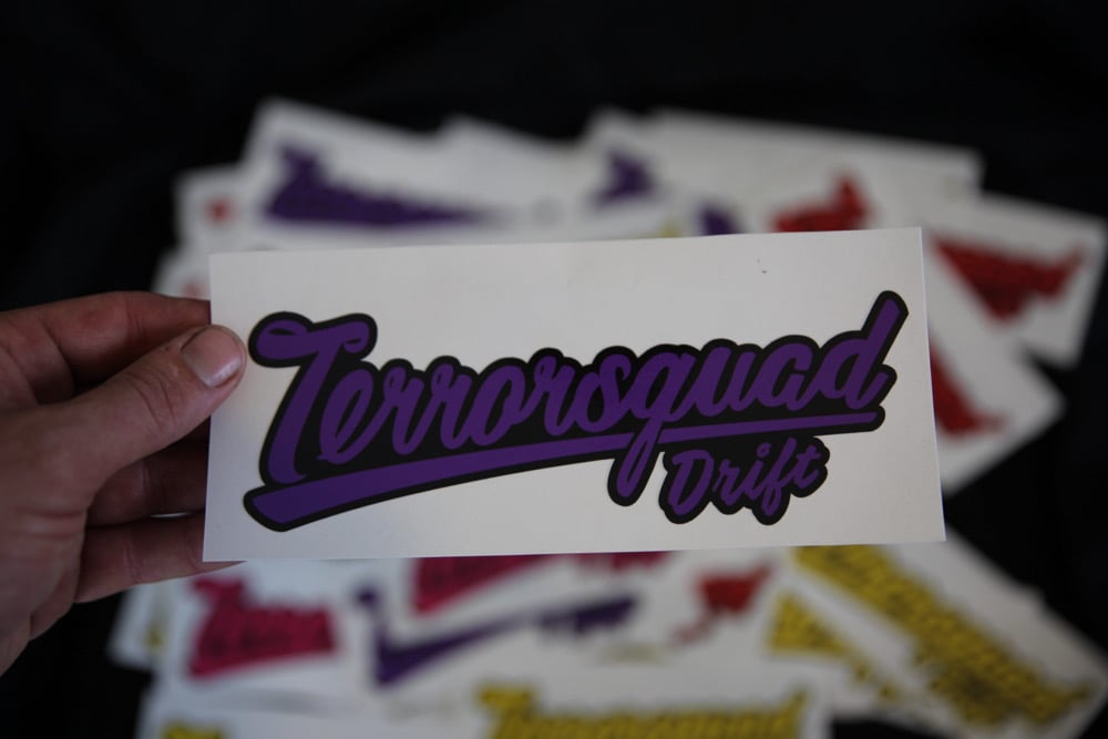Original Terrorsquad drift logo printed on high quality pink glitter, yellow and purple vinyl.